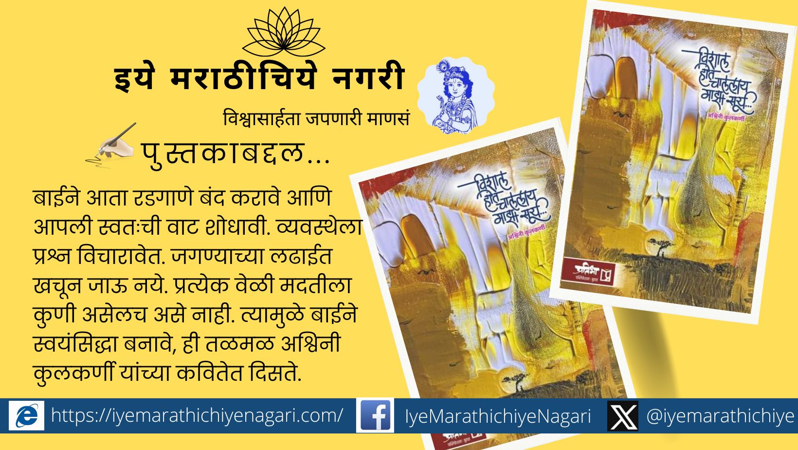 बाईने आता रडगाणे बंद करावे आणि आपली स्वतःची वाट शोधावी. व्यवस्थेला प्रश्न विचारावेत. जगण्याच्या लढाईत खचून जाऊ नये. प्रत्येक वेळी मदतीला कुणी असेलच असे नाही. त्यामुळे बाईने स्वयंसिद्धा बनावे, ही तळमळ अश्विनी कुलकर्णी यांच्या कवितेत दिसते.