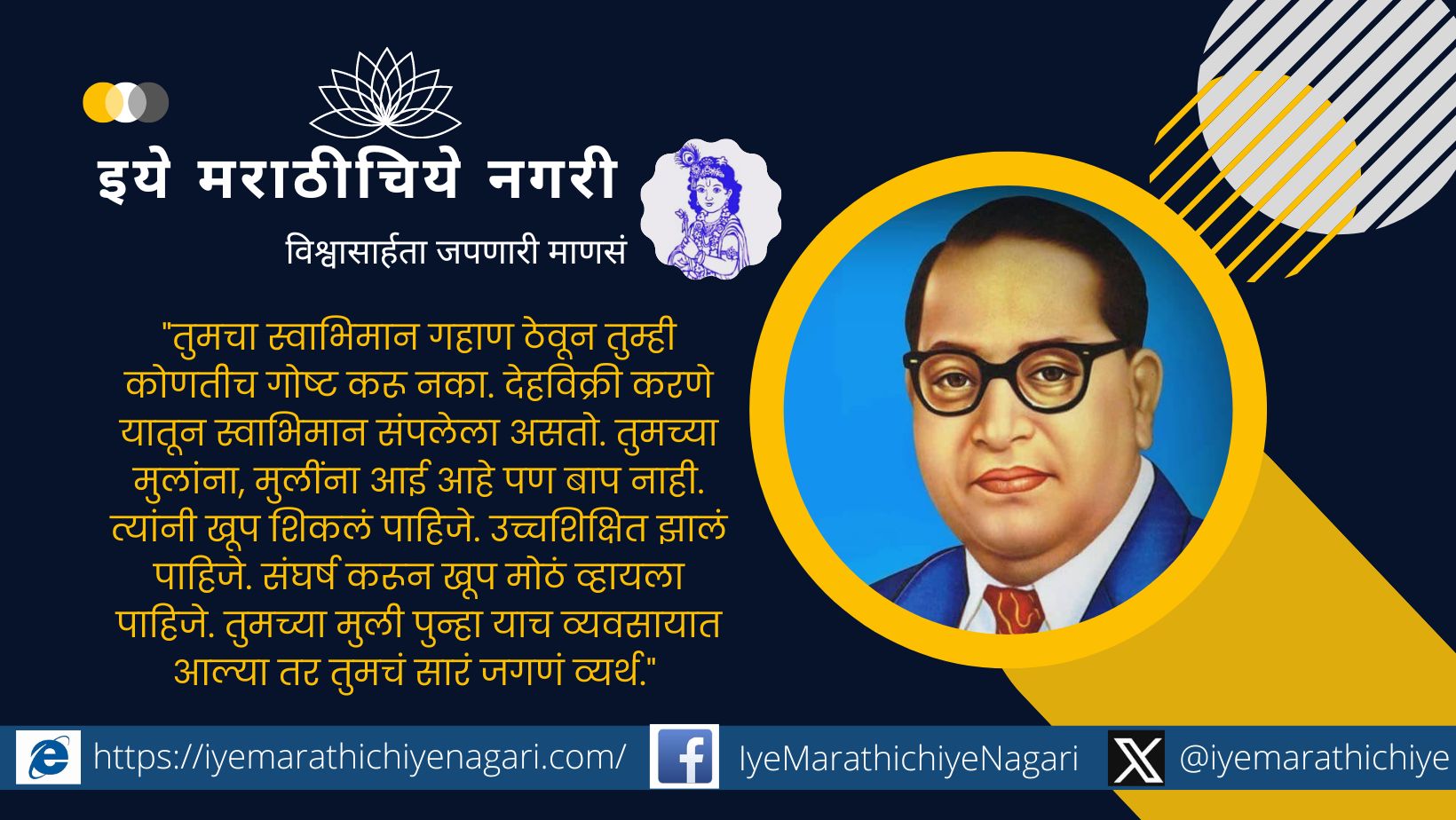 अशावेळी डॉ. बाबासाहेब आंबेडकर यांची वारंवार आठवण होत असते. बाबासाहेबांनी कामाठीपूरामध्येच देहविक्री करणाऱ्या महिलांची परिषद घेतली होती. तर दुसरी परिषद देहविक्री, मुरळी, जोगत्या या महिलांची मुंबई वरळी येते घेतली होती. या दोन्ही परिषदांमधून त्यांनी पुरुषांना बळी गेलेल्या या सर्वच शोषित महिलांना प्रबोधन करताना सांगितले होते की, “तुमचा स्वाभिमान गहाण ठेवून तुम्ही कोणतीच गोष्ट करू नका. देहविक्री करणे यातून स्वाभिमान संपलेला असतो. तुमच्या मुलांना, मुलींना आई आहे पण बाप नाही. त्यांनी खूप शिकलं पाहिजे. उच्चशिक्षित झालं पाहिजे. संघर्ष करून खूप मोठं व्हायला पाहिजे. तुमच्या मुली पुन्हा याच व्यवसायात आल्या तर तुमचं सारं जगणं व्यर्थ.”