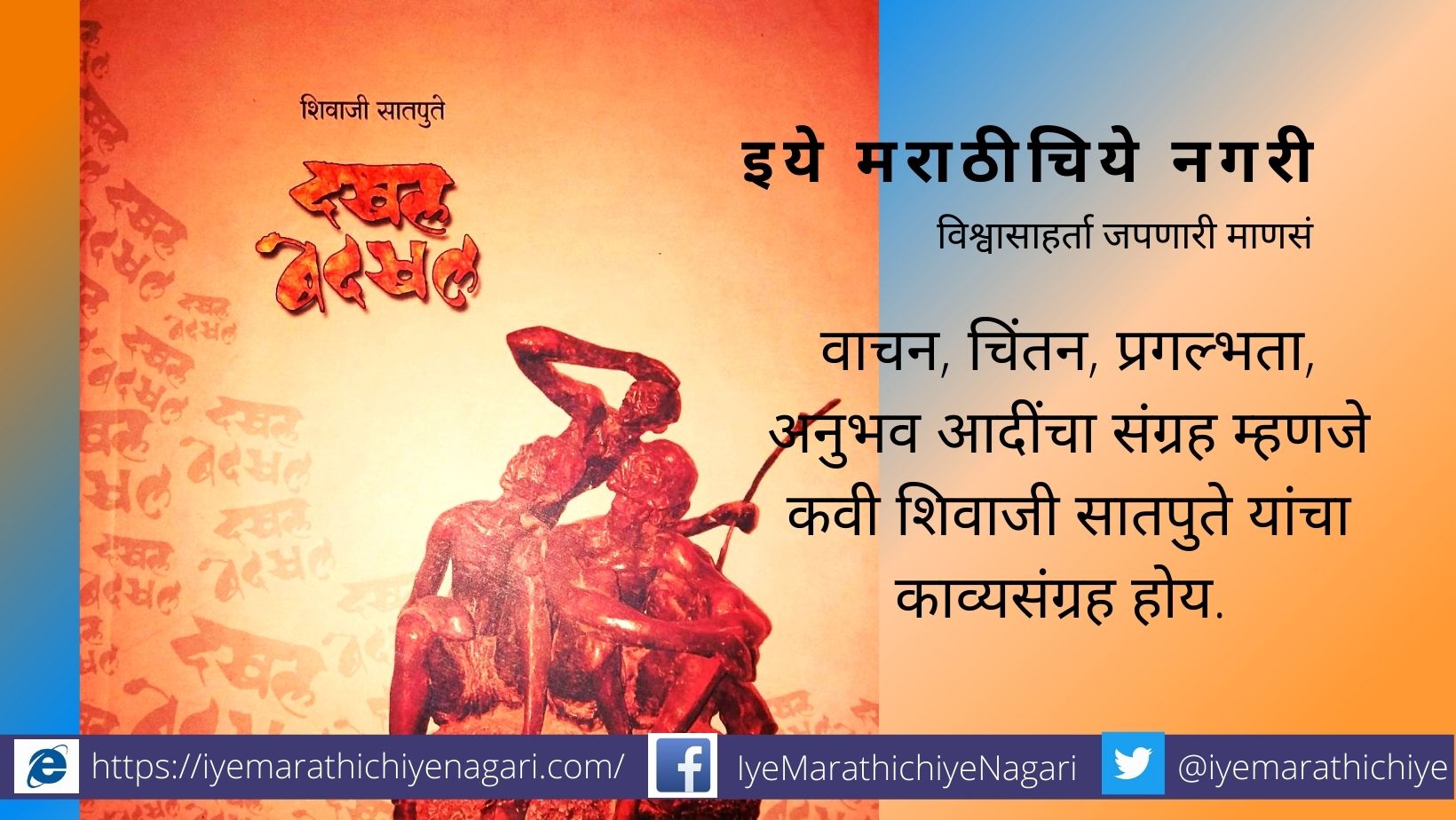 मंगळवेढ्याचे प्रसिद्ध कवी शिवाजी सातपुते यांचा दखल – बेदखल काव्यसंग्रह आवर्जून वाचला. काव्यसंग्रहामधील प्रत्येक काव्यरचना अतिशय साधे, सोपे पण तितकेच मौल्यवान वाटले. कमीतकमी शब्दांमध्ये जास्तीत जास्त गर्भितार्थ सांगणाऱ्या त्यांच्या सर्व कविता आहेत. एक कविता वाचली आणि शेवटपर्यंत वाचतच गेले अगदी अधाशासारखी …! आणि वाटले आपल्या परीने आपण या काव्यसंग्रहाबद्दल लिहावे.