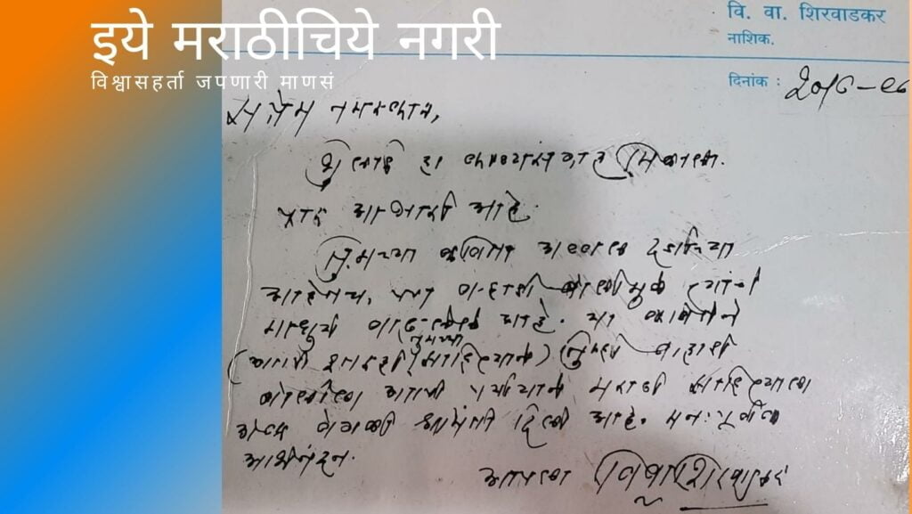 कुसुमाग्रज उर्फ वि. वा. शिरवाडकर यांचा उत्स्फूर्त अभिप्राय