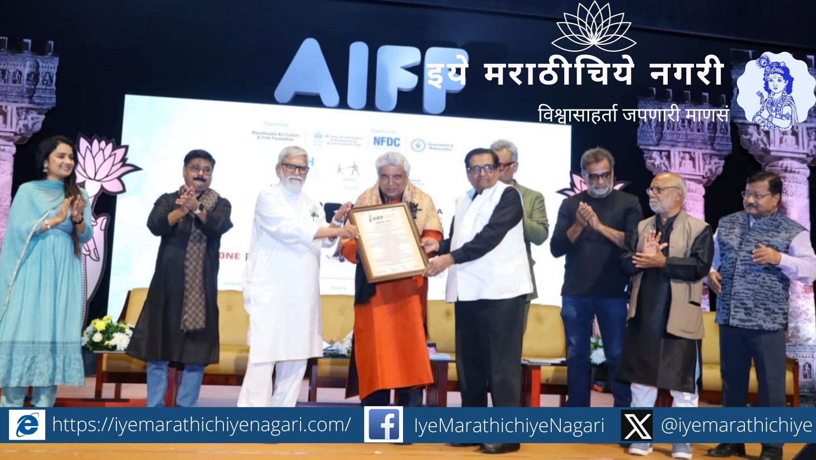 पद्मभूषण जावेद अख्तर यांना पद्मपाणी जीवनगौरव पुरस्कार प्रदान