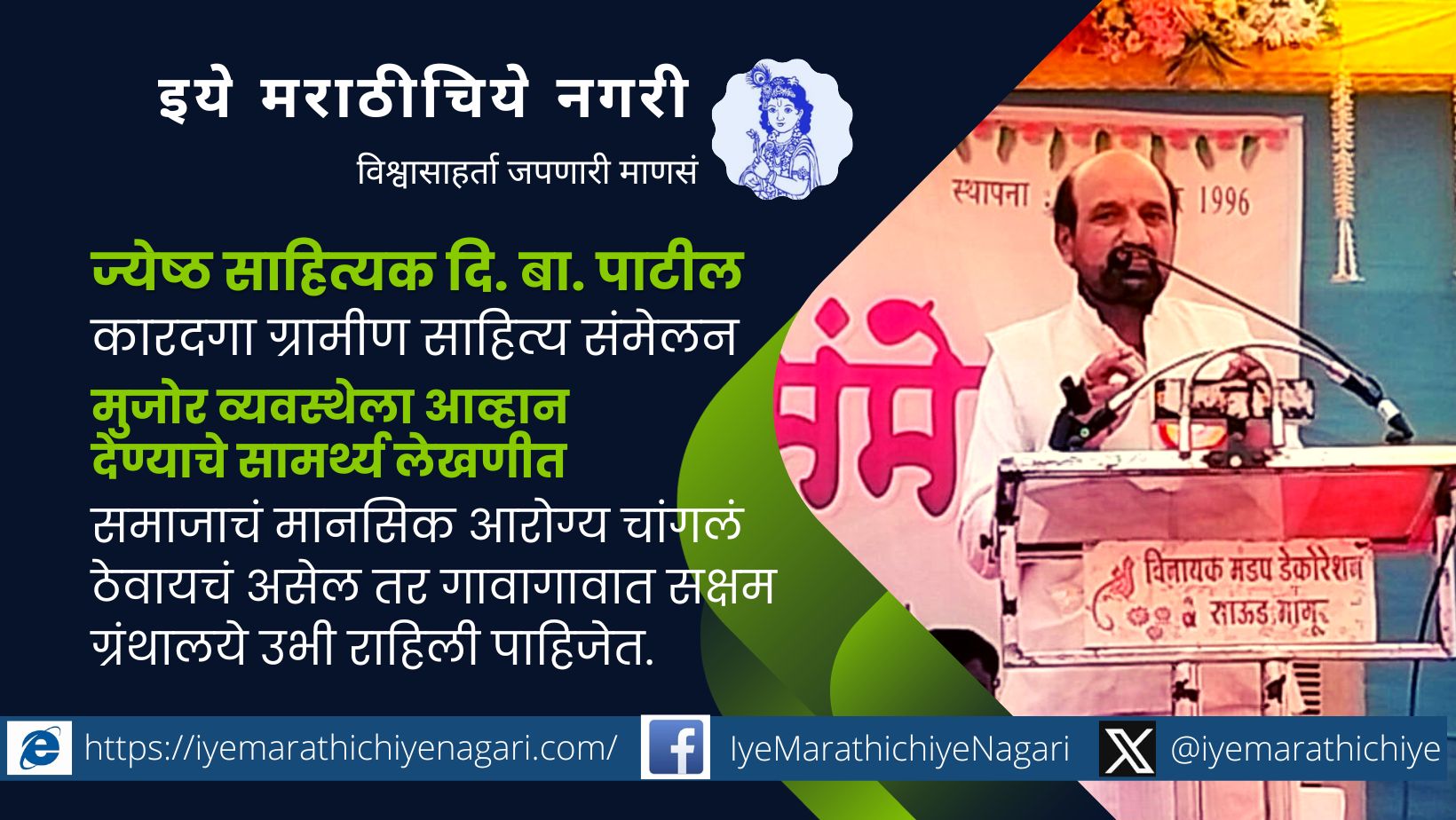 कारदगा येथे झालेल्या ग्रामीण साहित्य संमलेनामध्ये संमेलनाध्यक्ष दि. बा. पाटील यांनी केलेल्या भाषणाचा संपादित अंश….