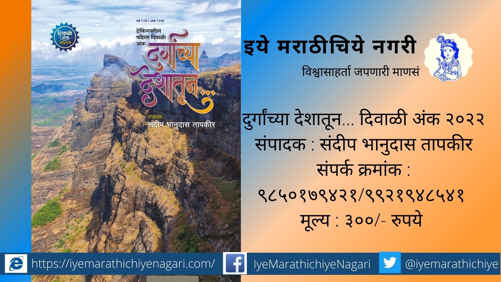 “दुर्गांच्या देशातून” हा ट्रेकिंगवरील पहिला दिवाळी अंक (२०२२) मुखपृष्ठापासूनच वाचकांना जिंकत जातो. मुखपृष्ठावर असलेले हरिश्चंद्र गडाचे इतके विलोभनीय दृश्य सहसा कुठल्याही कॅमेरात कैद होत नाही. परंतु ओंकार ओक यांना हे साध्य झाले आहे.