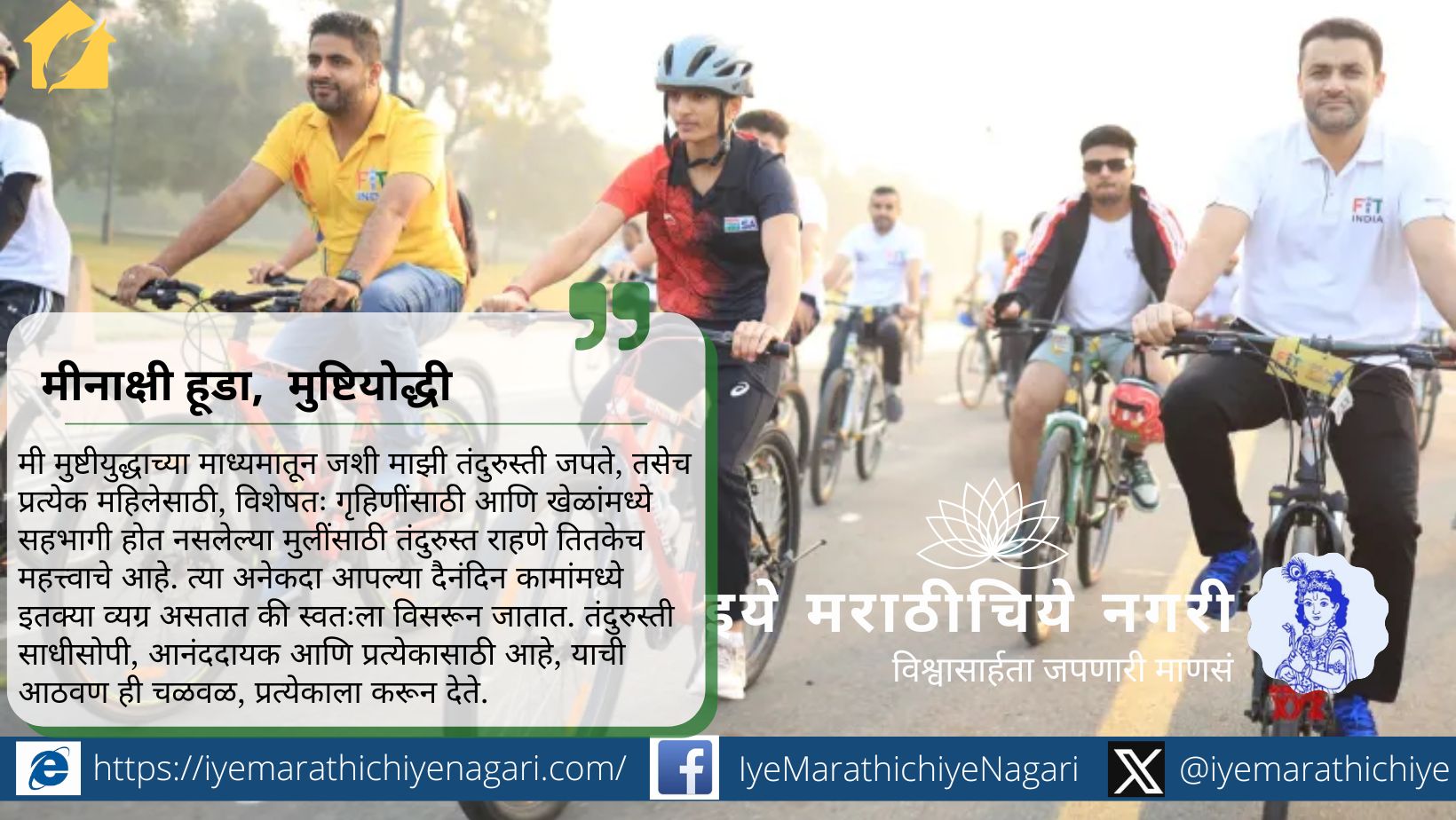 नवी दिल्ली – जागतिक अजिंक्यवीर मुष्टियोद्धी मीनाक्षी हूडा जेव्हा या रविवारी सकाळी लवकर मेजर ध्यानचंद नॅशनल स्टेडियमवर पोहोचल्या, तेव्हा त्यांना शेकडो सायकलस्वार, तंदुरुस्ती प्रेमी आणि त्यांची कुटुंबे एकत्र सायकल चालवण्यासाठी सज्ज असलेले दिसले. हे पाहून “आज यात सहभागी होऊन मला खूप आनंद झाला,” असे त्या म्हणाल्या.