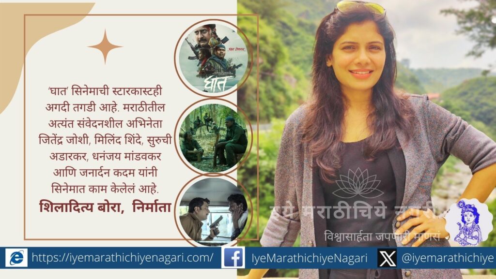 शिलादित्य बोरा यांची ”प्लॅटून वन’, मनीष मुंद्रा यांची ‘दृश्यम फिल्म्स’ आणि मिलापसिंह जडेजा, संयुक्ता गुप्ता आणि कुणाल कुमार यांनी मिळून सिनेमाची निर्मिती केली आहे. ‘घात’ सिनेमाची स्टारकास्टही अगदी तगडी आहे. मराठीतील अत्यंत संवेदनशील अभिनेता जितेंद्र जोशी, मिलिंद शिंदे, सुरुची अडारकर, धनंजय मांडवकर आणि जनार्दन कदम यांनी सिनेमात काम केलेलं आहे. या सिनेमाची सिनेमेटोग्राफी केली आहे, उदित खुराणा यांनी. नेटफ्लिक्सवरची ‘द हंट फॉर वीरप्पन’ ही डॉक्युमेंट्री तसेच आणि हुमा कुरेशी स्टारर ‘बयान’ असे तगडे प्रोजेक्ट नुकतेच पूर्ण केलेल्या खुराणांची सिनेमेटोग्राफी हेही ‘घात’चं आणखी एक वेगळेपण आहे.