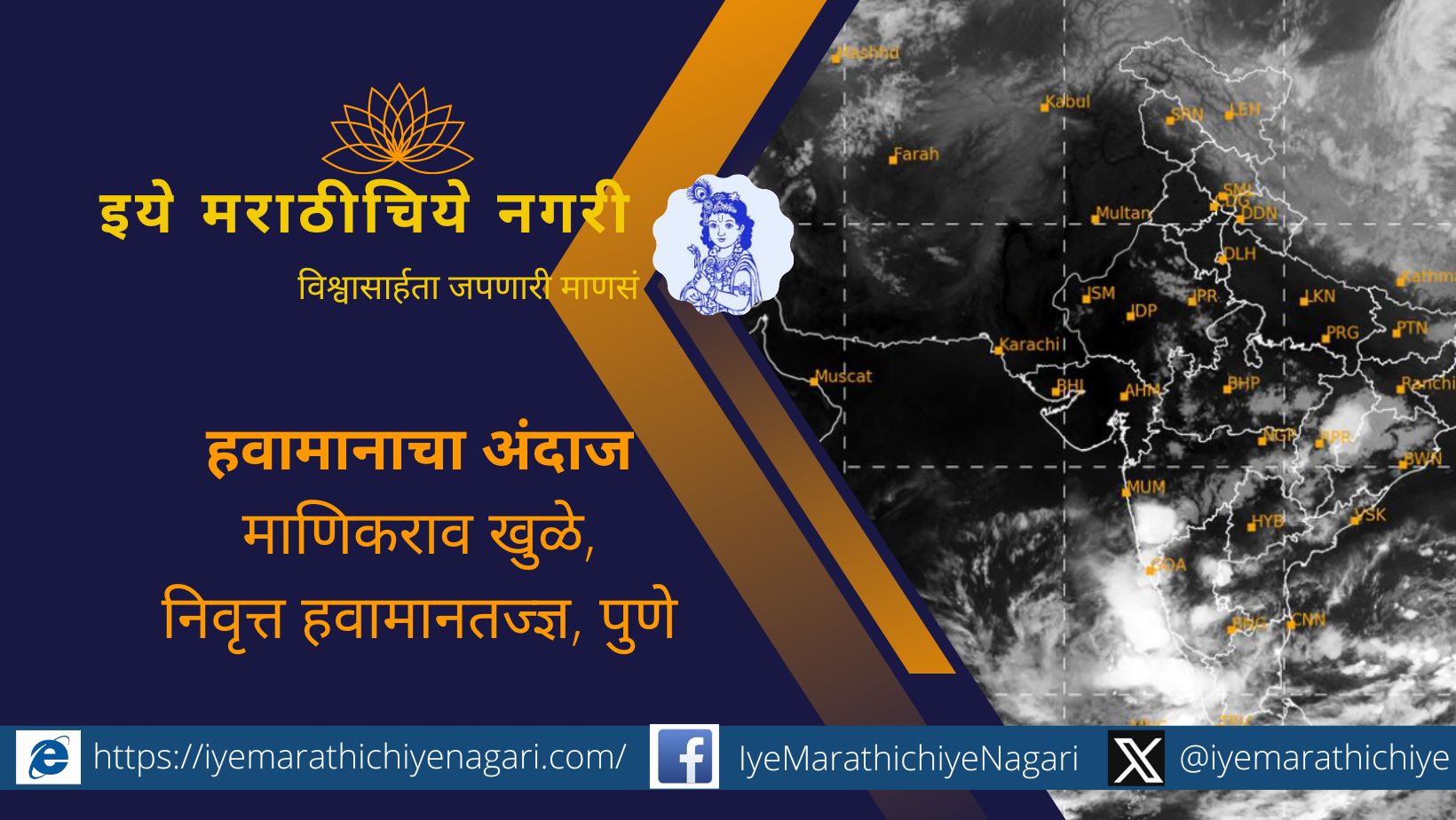 उष्णतेची लाट सदृश्य स्थिती असली तरी संपूर्ण महाराष्ट्रात आजपासुन पुढील ५ दिवस म्हणजे शनिवार ( दि.२५ मे )पर्यन्त ढगाळ वातावरणासहित तुरळक ठिकाणी किरकोळ अवकाळी पावसाची शक्यता कायम असुन गुरुवार, शुक्रवार, (दि.२३ व २४ मे )असे दोन दिवस दक्षिण महाराष्ट्रातील कोल्हापूर, सांगली, सोलापूर, बीड, धाराशिव, लातूर, परभणी, नांदेड या ह्या ८ जिल्ह्यात वादळी वाऱ्यासह पावसाची शक्यता अधिक जाणवेल.