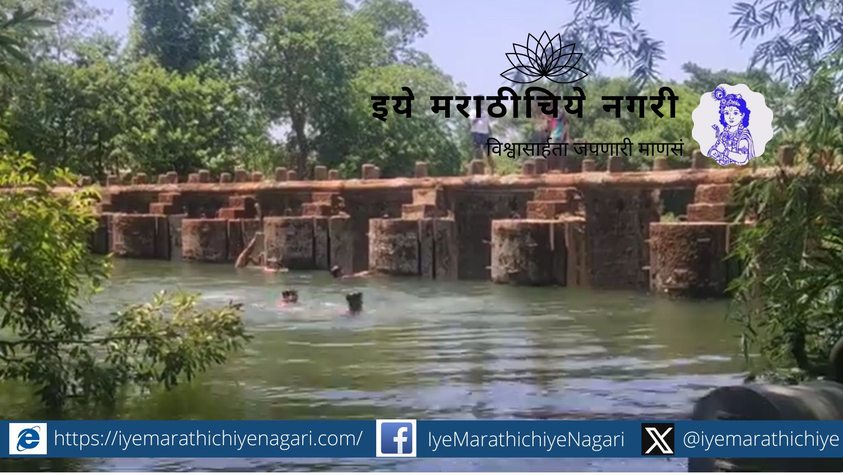 उन्हाळ्याच्या तडाख्यात… नदीवरील बंधाऱ्यात पोहण्याचा आनंद काही औरच असतो. वेदगंगा नदीत डुंबणारे हे भुदरगड तालुक्यातील तरूण