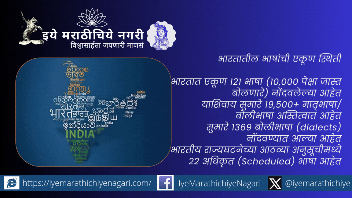 याशिवाय सुमारे १९,५००+ मातृभाषा/बोलीभाषा अस्तित्वात आहेत