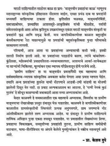 साहित्य विश्वात ग्रामीण साहित्य, दलित साहित्य, स्त्रीवादी साहित्य, आदिवासी साहित्य, जनसाहित्य, मुस्लिम साहित्य, जैन साहित्य, कामगार साहित्य, बाल साहित्य अशा साहित्याच्या वेगळ्या चुली असाव्यात का ? मराठी साहित्य हे भौगोलिक, लिंगवाचक, वर्गवादी, धर्मवादी, जातीयवादी व प्रचारकी कुंपणाचे बनते की, काय ? अशीही टीकाटिप्पणी कानावर पडत असते. ग्रामीण संवेदनशीलतेची मांडणी करणारे काही तथाकथित साहित्यिक स्वतःला ‘ग्रामीण साहित्यिक’ म्हणवून घेण्यास कमीपणा का मानत असतील. ग्रामीण संबोधल्या जाणाऱ्या साहित्याला कुणी देशीवादी साहित्य, कुणी कृषीजनांचं साहित्य, कुणी शेतकरी साहित्य म्हणतात. साहित्यातील नामकरण वादाचा, गटाचा हा वेगळा पेहराव काय साध्य करू पाहतोय ? अभ्यासक्रमाच्या पातळीवर ‘ग्रामीण साहित्य’ ही संकल्पना विद्यार्थ्यांना ‘संभ्रमित’ करणार नाही का ? अशा अनेकविध प्रश्नांचं कुतूहल संयत विश्लेषणाच्या बळावर डॉ. केदार काळवणे या तरूण अभ्यासकांनी या ग्रंथातून मांडले आहे.