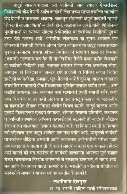 जादुई वास्तववादाला त्या पलीकडे जात त्याला ऐब्सरडिस्ट फिक्शनची जोड देणारी आणि कादंबरी लेखनाच्या साऱ्या प्रचलित धारणांना छेद देणारी व वाचताना अक्षरशः चक्रावून सोडणारी अपूर्व कादंबरी म्हणजे ‘शेवटची लाओग्राफिया’ कादंबरी होय. बाळासाहेब लबडे यांनी ‘पिपिलिका मुक्तीधाम’ या त्यांच्या पहिल्या प्रयोगशील कादंबरीच्या कितीतरी पुढचा टप्पा येथे गाठला आहे. पारंपरिक लोककथा या सुगम असतात पण जीवनाची विसंगती विविध अंगाने टिपत लोककथेला जादुई वास्तववादात बुडवत न-नाट्य अथवा अधिक नेमकेपणानं सांगायचं झालं तर विसंगत (एब्सर्ड) नाट्यमय रूप देत ती नॉनलिनीयर रीतीने कथन करीत लेखकाने ही कादंबरी लिहिली आहे. स्वप्नात वारंवार येणारा पंख असलेला घोडा, आगंतुक ही निवेदकाचा अल्टर इगो झालेली व विविध रूपात चित्रित झालेली व्यक्तिरेखा, स्मशान, भूत-प्रेताची अघोरी दुनिया, वास्तव जगातला संघर्ष विसरण्यासाठी ग्रीक मिथकाच्या दुनियेत पलायन करीत रमणे… असं काहीसं कथानक, छे- कथानक कसं म्हणायचं एवढी मनाची स्वैर, कधी प्रश्न विचारणाऱ्या तर कधी अंतरंगाचा तळ ढवळून काढणाऱ्या भटकंतीचं या कादंबरीत लेखक गतिमान शैलीत चित्रण करतो. जादुई वास्तव आणि एब्सर्ड फिक्शनच्या एकदम वेगळ्या, अंगावर येणाऱ्या प्रतिमांनी, कथानक व व्यक्तिचित्रणापेक्षा अभिनव कथनशैलीने नटलेली ही कादंबरी बौद्धिक रंजन करून वास्तवाला उजागर करणारी आहे. हा किमान मराठी साहित्यात तरी पहिलाच मस्त जमून आलेला एक नवा प्रयोग आहे. प्रस्तुतची कादंबरी वाचकांच्या बौद्धिक क्षमतेची आणि कलात्मक अभिरुचीची परीक्षा पहाते पण वाचताना आपल्या हाती जीवनाचं महत्वाचं काही एक आकलन होतंय असं वाटलं की मग त्यानंतर ही कादंबरी वाचकांना आपल्या पूर्ण कह्यात घेऊन माणसाच्या निरर्थक जगण्याचे जे तत्वज्ञान उलगडते, ते भन्नाट आहे. मन आणि विचारांवर गारुड करणारे आहे.