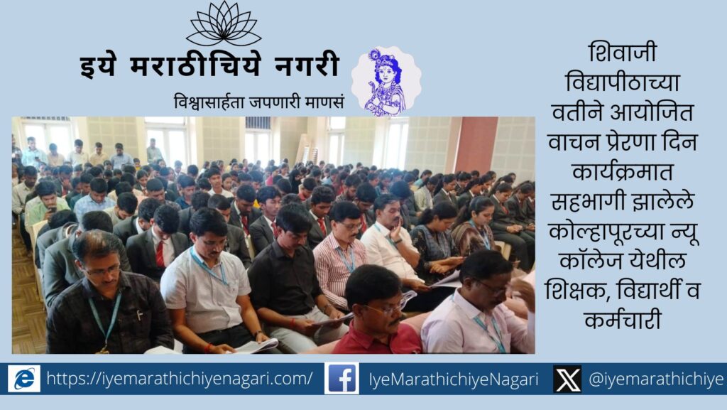 कोल्हापूर: ‘या युगीं सर्व पृथ्वीवर म्लेंच्छ बादशहा. मऱ्हाटा पातशहा येवढा छत्रपती जाला, ही गोष्ट काही सामान्य जाली नाही…’ छत्रपती शिवाजी महाराज यांच्या राज्याभिषेक सोहळ्याचे प्रत्यक्षदर्शी बखरकार कृष्णाजी अनंत सभासद यांनी या सोहळ्याचे महत्त्व विषद करणारे उपरोक्त विधान केले. वाचन प्रेरणा दिनाच्या निमित्ताने शिवाजी विद्यापीठासह संलग्नित २९७ महाविद्यालयांतील हजारो विद्यार्थी, शिक्षक आणि कर्मचाऱ्यांच्या माध्यमातून सकाळी १०.४५ ते ११.०० या पंधरा मिनिटांच्या कालावधीत शिवराज्याभिषेक दिनाच्या स्मृतींचा जागर करण्यात आला.