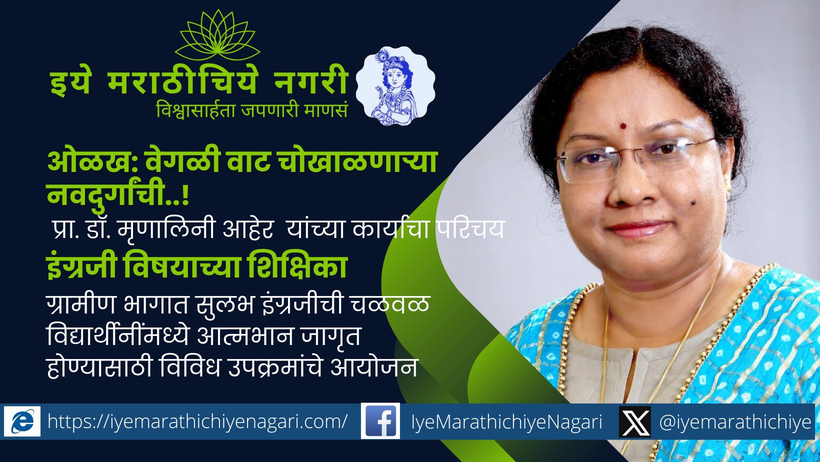 ओळख: वेगळी वाट चोखाळणाऱ्या नवदुर्गांची..! ..१... प्रा. डॉ. मृणालिनी आहेर
