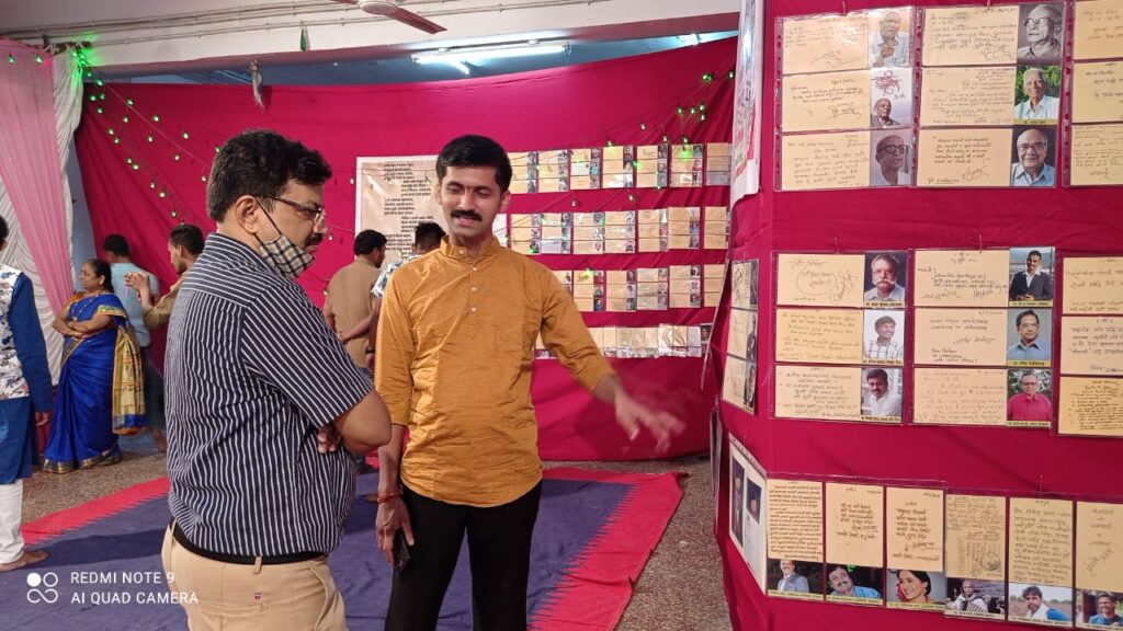 दादर मुख्य पोस्ट कार्यालयामध्ये आयोजित केलेल्या या प्रदर्शनामध्ये देश विदेशातील राष्ट्रीय आंतरराष्ट्रीय स्तरावरील विविध क्षेत्रातील व्यक्तींच्या हस्ताक्षरातील संदेश पत्रांचा समावेश होता. संपुर्ण दिवस चाललेल्या या प्रदर्शनाला उत्स्फूर्त प्रतिसाद मिळाला.