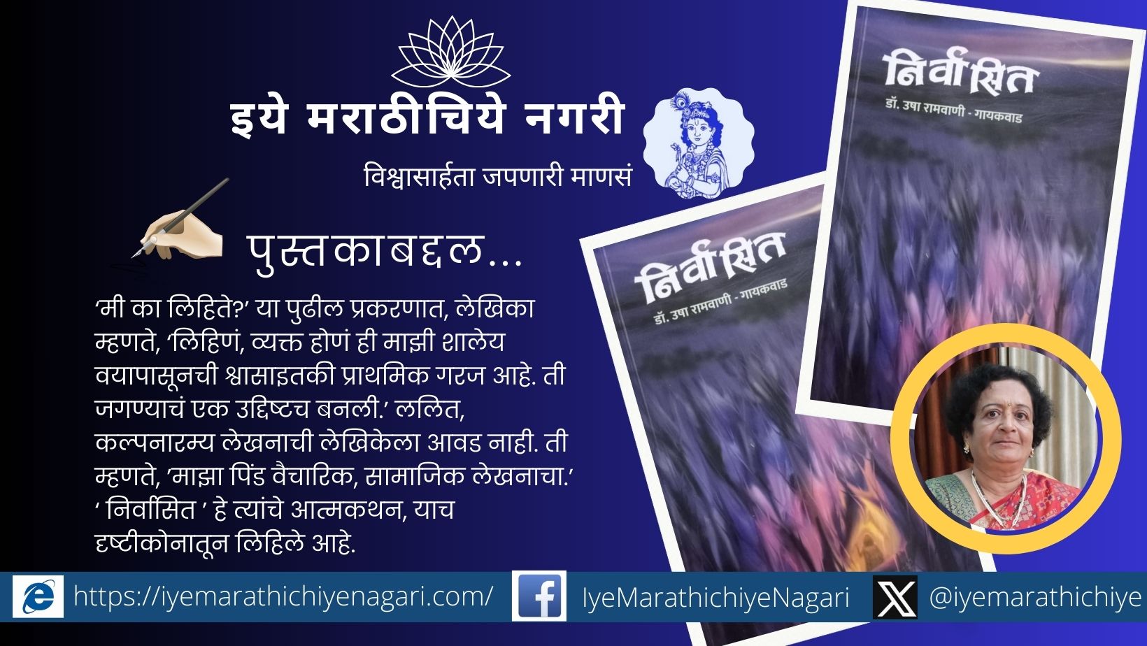‘ निर्वासित ’ हे डॉ. उषा रामवाणी यांचे आत्मकथन. त्यांच्या जीवन-संघर्षाची कहाणी. या पुस्तकाच्या प्रस्तावनेत डॉ. राजेंद्र बर्वे (मानसोपचार तज्ज्ञ) लिहिताता, ‘हे आत्मकथन वाचनीय, प्रांजळ आहे. यात उषाच्या ‘धाडस करण्याला हाक देऊ आणि पुढे जाऊ’ या वृत्तीचा परिचय येतो. अंगावर कोसळलेले प्रसंग धाडसाने टिपताना आणि त्यातून मार्ग काढण्याची पायरी ओलांडताना त्यांना पदोपदी झगडावं लागलं. प्रस्थापित जीवनशैली झुगारून आत्मशोधनाचं धाडस ही त्यांची या आत्मकथनाचा ‘हीरो’ म्हणून प्रमुख भूमिका.’ ते पुढे लिहितात, ‘आत्मकथा म्हणजे, आपल्याला समजलेल्या जीवनातील, स्वत:ला भावलेल्या अनुभवांचं कथन असतं.’