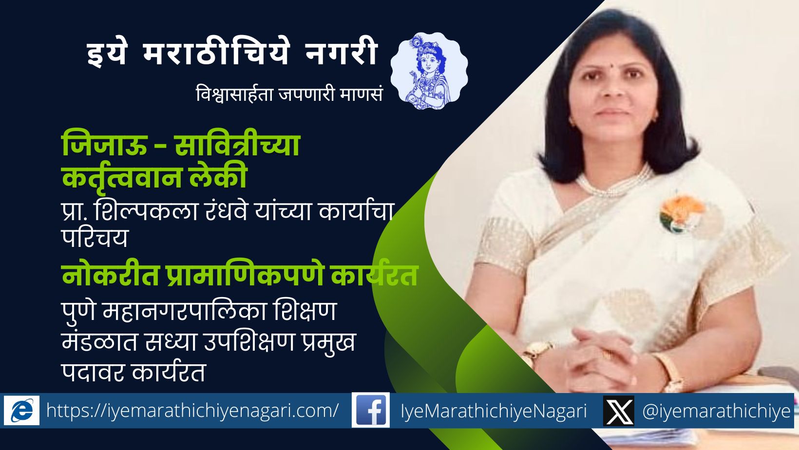 ३ जानेवारी २०२५ ते १२ जानेवारी २०२५ पर्यंत सावित्री ते जिजाऊ दशरात्रोत्सव अंतर्गत १० कर्तृत्ववान महिलांच्या यशोगाथा…यामध्ये आज प्रा. शिल्पकला रंधवे यांच्या कार्याचा परिचय…ॲड. शैलजा मोळक