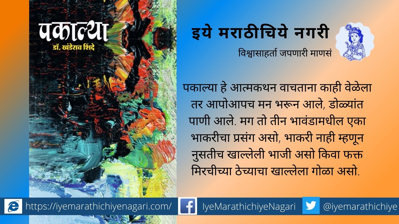 जे जे भोगले आणि जगले ते अनुभव म्हणजे आत्मकथन. माझ्या मते डॉ. खंडेराव शिंदे यांचे पकाल्या हे आत्मकथन म्हणजे वास्तविक जीवनाचे खरेखुरे उदाहरण आहे. कारण हे पुस्तक वाचताना जणू माझेच अनुभव आहेत असेच मला वाटत होते, माझ्या जीवनातील अनेक प्रसंग मला खुणावत होते.