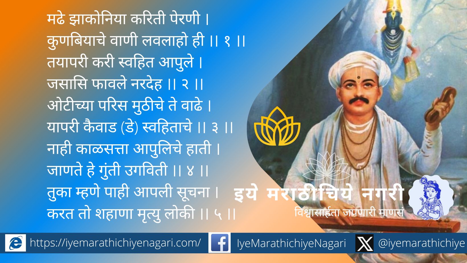 तुका म्हणे पाही आपली सूचना । करत तो शहाणा मृत्यु लोकी ।। ५ ।।