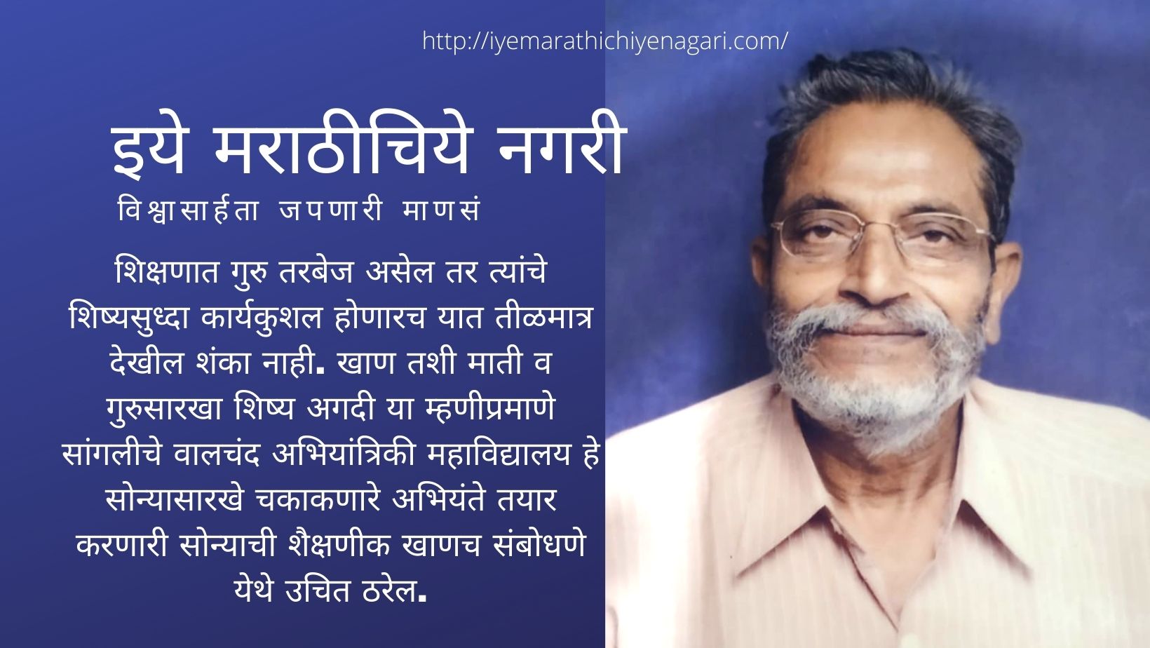 1947 साली कै. धोंडुमामा साठे, प्रसिध्द बांधकाम व्यावसायिक व प्रसिध्द उद्योगपती सेठ लालचंद हिराचंद या दोन महान दुरदर्शी व्यक्तीनी स्थापण  केलेल्या व  अल्पावधीतच महाराष्ट्रात अग्रगण्य हा सोनेरी मुकूट परिधान केलेल्या वालचंद अभियांत्रिकी महाविद्यालयाला मी पहिली पसंती दिली. माझ्या वडिलांचे माजी विद्यार्थी आनंदराव सुतार व माझ्या जेष्ठ बंधूचे जावई ज्ञानदेव ल. पवार हे दोन अभियंते लघुपाटबंधारे विभागात त्यावेळी ज्युनियर इंजिनियर ह्या पदावर कार्यरत होते. त्यामुळे त्यांच्याशी वेळोवेळी कोर्सबाबत चर्चा होत होती आणि तेव्हाच मी स्थापत्य अभियांत्रिकी मध्येच पदवी घ्यायची असे मनोमनी पक्के केले होते.
