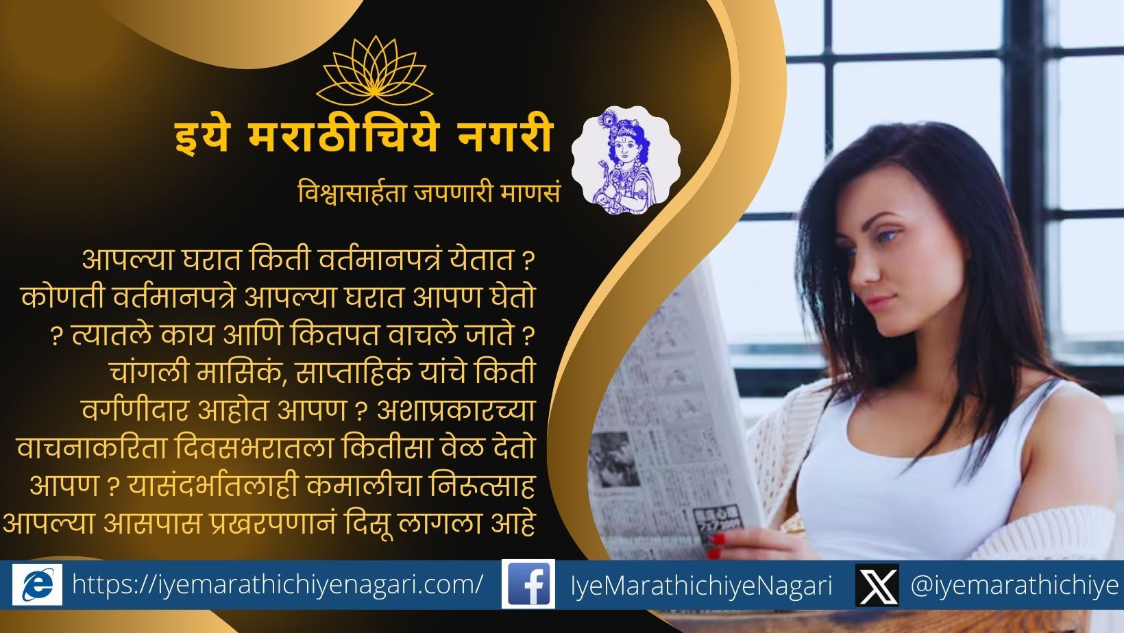 आपले वाचन दुदैवाने केवळ वर्तमानपत्रापुरते मर्यादित राहिले आहे. अशा प्रकारचे वाचन तरी आपल्या समाजात कितपत गांभिर्याने केले जाते याबाबत शंकाच आहे. ‘‘केवळ वर्तमानपत्रांच्या वाचनामुळे शुष्क पांडित्य चोहोकडे माजून खऱ्या विद्वत्तेचा लोप होतो.’’ असे एक महत्त्वाचे निरिक्षण विष्णुशास्त्री चिपळूणकर यांनी पूर्वीच नोंदवून ठेवले आहे. आपल्या घरात किती वर्तमानपत्रं येतात ? कोणती वर्तमानपत्रे आपल्या घरात आपण घेतो ? त्यातले काय आणि कितपत वाचले जाते ? चांगली मासिकं, साप्ताहिकं यांचे किती वर्गणीदार आहोत आपण ? अशाप्रकारच्या वाचनाकरिता दिवसभरातला कितीसा वेळ देतो आपण ? यासंदर्भातलाही कमालीचा निरूत्साह आपल्या आसपास प्रखरपणानं दिसू लागला आहे. उत्साहानं सुरू केलेली कितीतरी चांगली मासिकं-साप्ताहिकं बंद करावी लागली आहेत. हे असले अक्षर शत्रूत्व आपल्याला परवडणारे नाही. अशांची गणना रामदासांनी ‘अक्षरे गाळून वाची। कां ते घाली पदरीची। निगा न करी ग्रंथांची । तो एक मूर्ख।। ’ अशा शब्दांत केली आहे. वाचनाचे संस्कार घडविण्याच्या, नवे वाचक तयार करण्याच्या सुंदर जागा म्हणून शाळा महाविद्यालयांकडे पाहिले जाते. इथेही अपवाद वगळता चांगल्या साहित्यकृती, संदर्भग्रंथ न वाचणारे, नवी पुस्तके विकत न घेणारे, घरातल्या वर्तमानपत्रांना सोयीस्कर काट मारून कंजूसपणाने शाळा महाविद्यालयातल्या वर्तमानपत्रातल्या बातम्या उभ्याउभ्याच वाचणारे लोक खूप मोठ्या प्रमाणात वाढू लागले आहेत. आपल्याच वाचनाची ही दशा तर मग मुलांच्या वाचनाची तर बातच सोडा. याचे किती गंभीर परिणाम आपल्यावर आणि पर्यायाने भावी पिढ्यांवर होणार आहेत, याचा गांभिर्याने विचार करण्याची वेळ अजूनही येऊन ठेपलेली नाही का ? तर ‘शाळा महाविद्यालयातही वाचनाच्या संदर्भातील परिस्थिती आशादायक नाही. ‘शाळा महाविद्यालयातही ज्ञानविन्मुखता, अव्यवहार व असंस्कृतता’ हे गुण वाढू लागल्याचे निरिक्षण ग्रंथ प्रकाशक अरूण जाखडे यांनी नोंदविलेले आहेत. संदर्भग्रंथांकडे तर आपले अक्षम्य दुर्लक्ष होत आहे; हे मान्यच करावे लागेल. बाजारात तयार मिळणारी गाईड्स अथवा तत्सम नोट्सवर गुजराण करणाऱ्या शिक्षकांची पिढी वाढू लागली आहे. हे जर असेच सुरू राहिले तर, ती आपल्या पूर्वापार चालत आलेल्या ज्ञान व्यवहाराकरिता धोक्याची घंटा ठरणार यात शंकाच नाही. आपल्या वाचन संस्कृतीचा विचार करता प्रकाशक, वितरक, जाहिरातदार यांचाही विचार करणे आवश्यक आहे. पुस्तकांची खरेदी विक्री हा एक उद्योग-व्यवसाय आहे. आणि ते मान्यच करावं लागेल. तथापि इतर अनेक उद्योगांपेक्षा या उद्योग-व्यवहाराचे स्वरूप निराळे आहे; हे आपण घ्यानात घेतले पाहिजे. इथे केवळ आर्थिक लाभालाभाचा विचार नसावा. आर