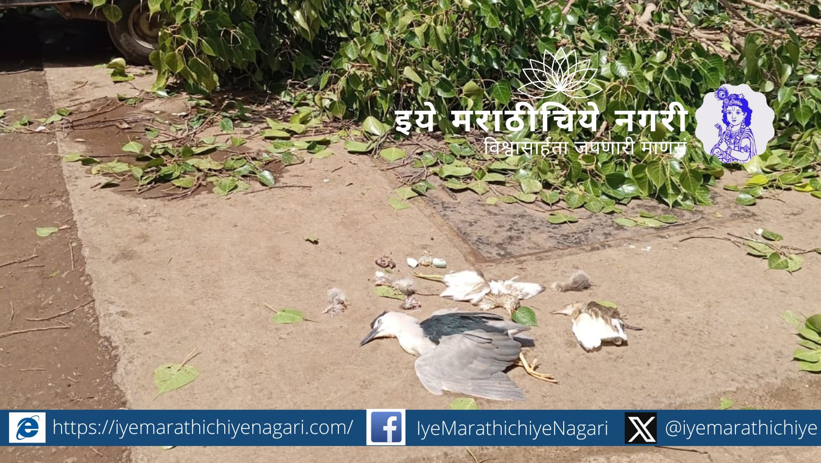 सांगली महानगर पालिका क्षेत्रातील ,पेट्रोल पंपावर विना परवाना वृक्ष तोड करण्याचे काम चालू असताना झाडावरील पक्षी, पिल्ले ,अंडी, घरटी खाली पडली असता. पक्षीप्रेमी, प्राणीप्रेमी यांनी जागेवर जाऊन पक्षी ताब्यात घेतले व पुढील उपचारासाठी वन विभागाच्या ताब्यात दिली.