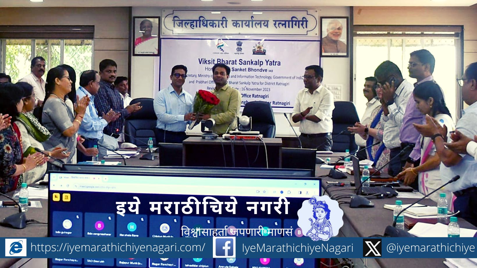 भारत सरकारच्या फ्लॅगशिप योजनांचा लाभ लक्ष्यित लाभार्थ्यांपर्यत वेळेत पोहोचावेत याची खात्री करण्याच्या उद्देशाने विकसीत भारत संकल्प यात्रा ही देशव्यापी मोहीम केंद्र शासनाकडून आखण्यात आली असून ही यात्रा १५ नोव्हेंबर ते २६ जानेवारी २०२४ या कालावधीत पार पडणार आहे. या मोहिमेच्या अनुषंगाने भारत सरकारचे संयुक्त सचिव श्री. भोंडवे (भा.प्र.से) यांनी जिल्हाधिकारी कार्यालयातील सभागृहात आढावा घेतला.