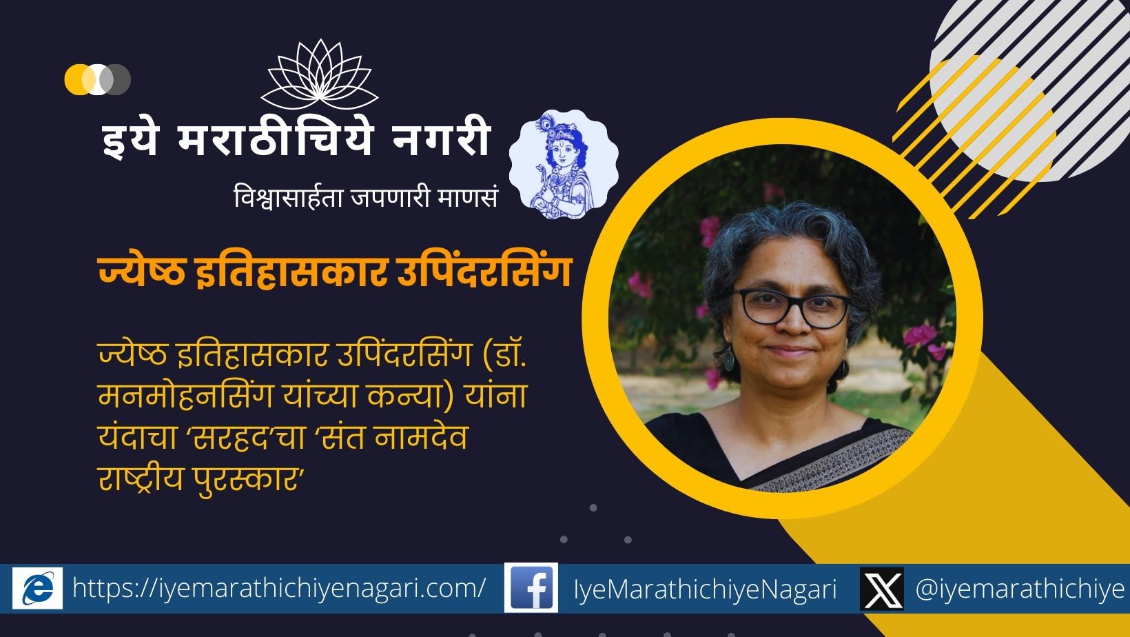 ज्येष्ठ इतिहासकार उपिंदरसिंग (डॉ. मनमोहनसिंग यांच्या कन्या) यांना यंदाचा ‘सरहद’चा ‘संत नामदेव राष्ट्रीय पुरस्कार’ 16 जुन रोजी पुण्यात देणार