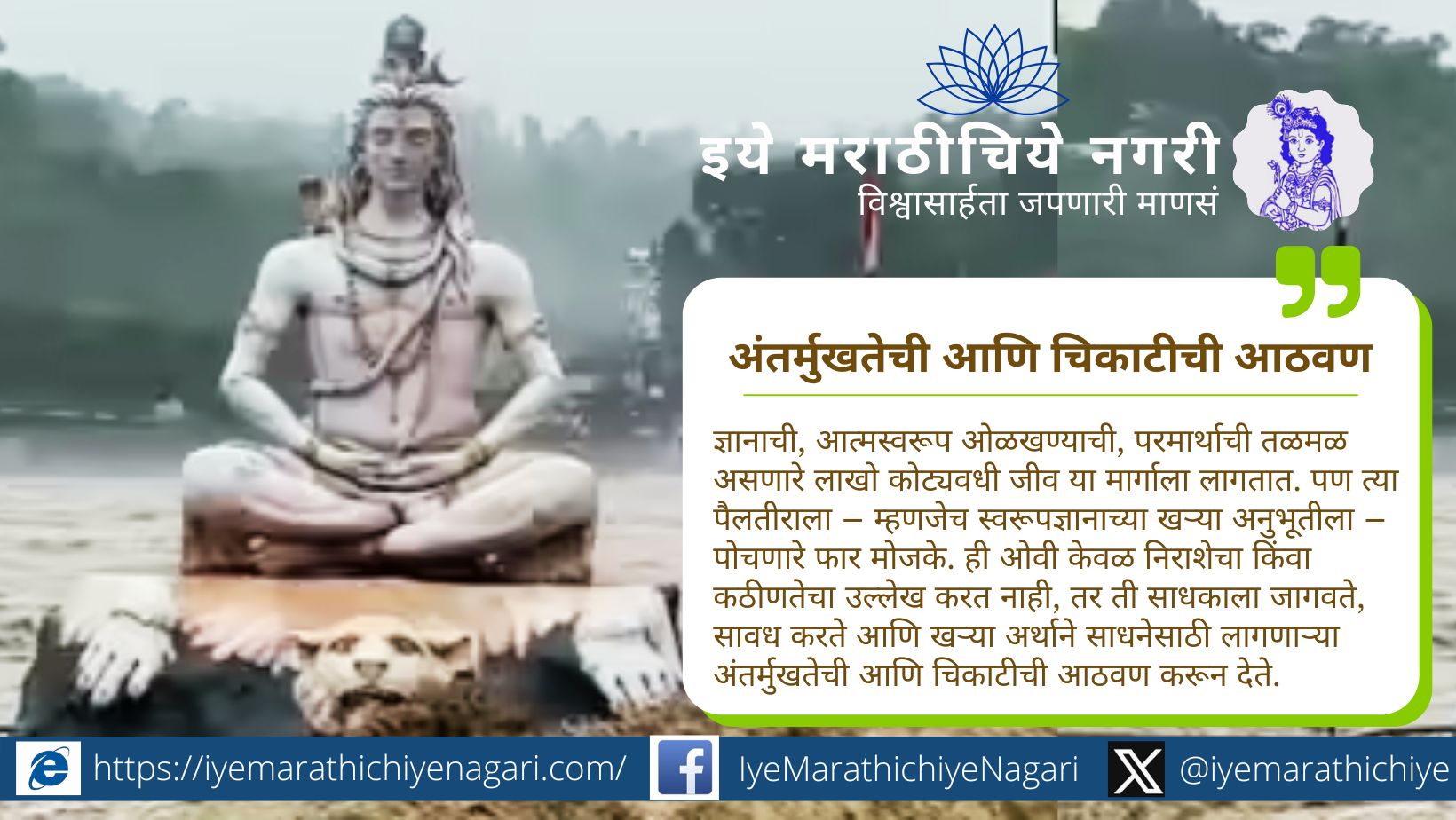 ज्ञानेश्वर माऊलींची ही ओवी म्हणजे साधनेचा वस्तुनिष्ठ आराखडा. “कोट्यवधी लोक प्रयत्न करतात, पण एखादाच यशस्वी होतो” हा कठोर सत्याचा धडा आहे. पण तो निराशा देणारा नाही; उलट साधकाच्या अंतर्मनात अग्नी पेटवणारा आहे. कारण ‘तो एखादा मीच असलो तर?’ ही प्रेरणा यातून मिळते.