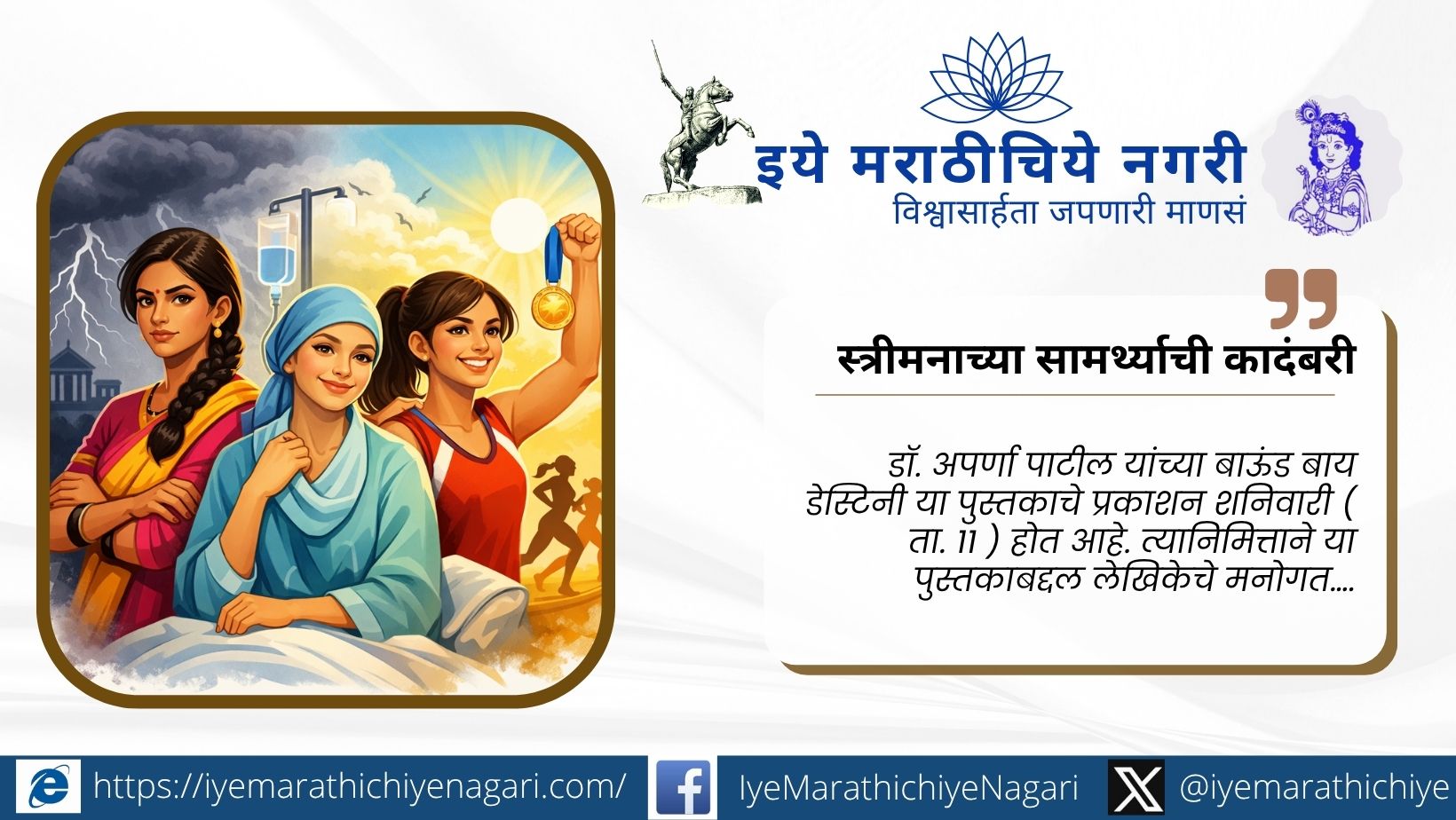 स्त्रीच्या अंतर्मनातील शांत ताकद, जिद्द आणि स्वप्नांना आकार देणारी ही कथा आहे. तीन तरुण मुलींच्या आयुष्याची, ज्या वेगवेगळ्या संघर्षांमधून जात असल्या तरी एकमेकींच्या सहवासात स्वतःला नव्याने शोधतात. वेदना, आजार, सामाजिक बंधने आणि वैयक्तिक द्वंद्व यांना सामोरे जाताना त्यांची मैत्री आशेचा दीप बनते. ही कादंबरी केवळ संघर्षांची नाही, तर स्वतःचा आवाज शोधणाऱ्या आणि ‘नाही’ ला ‘हो’ मध्ये बदलणाऱ्या स्त्रीशक्तीची प्रेरणादायी गाथा आहे. डॉ. अपर्णा पाटील यांच्या बाऊंड बाय डेस्टिनी या पुस्तकाचे प्रकाशन शनिवारी ( ता. ११ ) होत आहे. त्यानिमित्ताने या पुस्तकाबद्दल लेखिकेचे मनोगत….