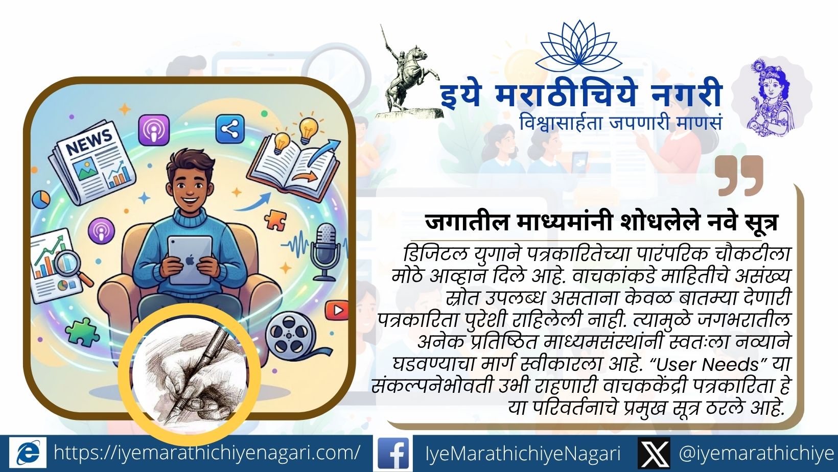 जगभरातील माध्यमविश्व सध्या एका खोल बदलाच्या प्रक्रियेतून जात आहे. केवळ बातम्या देणाऱ्या पारंपरिक चौकटीतून बाहेर पडत, वाचकांच्या गरजांभोवती स्वतःला पुन्हा घडवण्याचा प्रयत्न अनेक आंतरराष्ट्रीय माध्यमसंस्थांनी यशस्वीपणे केला आहे. “User Needs” ही संकल्पना त्यांच्या या परिवर्तनाचा केंद्रबिंदू ठरली आहे. या संकल्पनेचा स्वीकार करताना त्यांनी केवळ सामग्रीत बदल केले नाहीत, तर आपल्या संपादकीय विचारसरणीपासून ते संस्थात्मक रचनेपर्यंत सर्व काही नव्याने उभे केले.