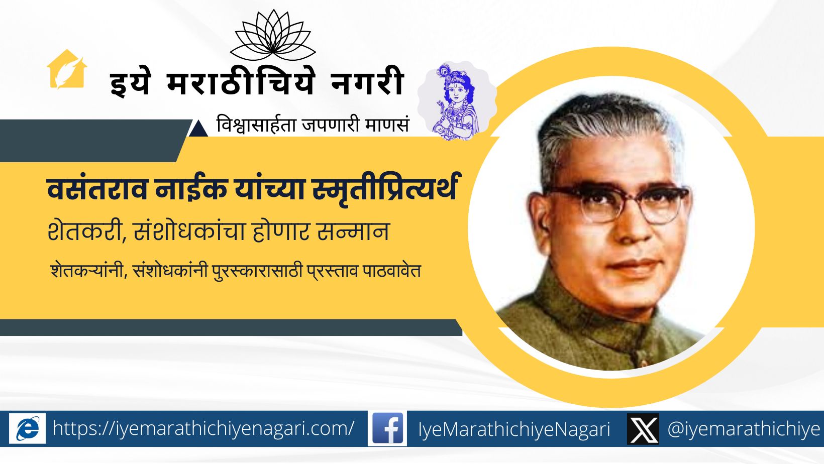 पुसद ( जि. यवतमाळ) : हरितक्रांतीचे प्रणेते, भूमिपुत्र, माजी मुख्यमंत्री वसंतराव नाईक यांच्या स्मृतीप्रित्यर्थ त्यांच्या स्मृतिदिनी दरवर्षी २८ ऑगस्ट रोजी विक्रमी उत्पादन घेणाऱ्या निवडक कर्तबगार शेतकऱ्यांचा तसेच कृषी शास्त्रज्ञांचा शाल, श्रीफळ, स्मृतिमानचिन्ह व सन्मानपत्र देऊन मान्यवरांच्या हस्ते सत्कार करण्याची पुसदच्या वसंतराव नाईक स्मृती प्रतिष्ठानची परंपरा आहे. त्यासाठी प्रस्ताव पाठविण्याचे आवाहन करण्यात आले आहे.